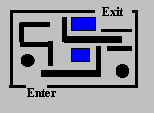 What is the shortest route that the small robot (black dot) can use to get from "Enter" to "Exit", avoiding the obstacles?