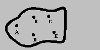 A drug representative must visit each of the five clinics in her area, as shown on the map below. In what order should she visit the clinics to minimize the distance traveled?